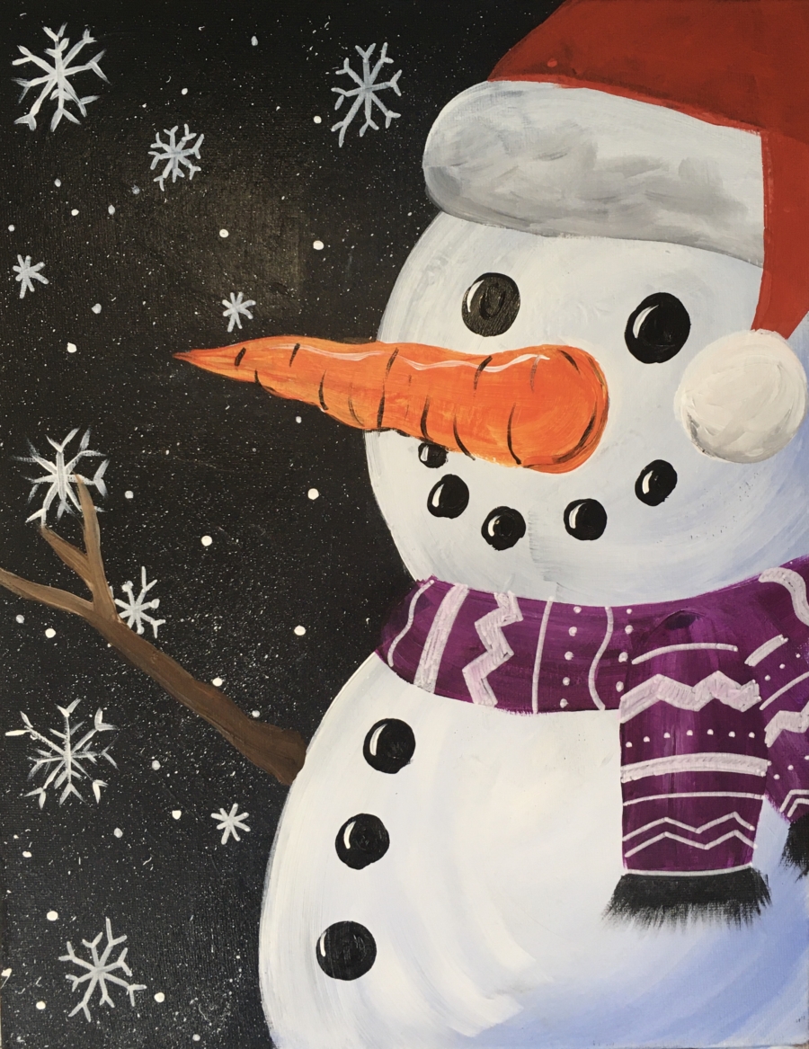 This snowman is painted on a black canvas and it is a very easy painting to do!